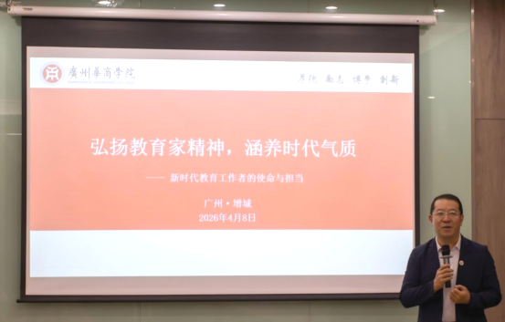 为进一步加强师德师风建设,大力弘扬教育家精神,4月8日下午,由人工智能学院承办的广州华商学院“华商师德讲堂”专题活动在图书馆教师发展中心互动室举行。活动以“弘扬教育家精神,涵养时代气质”为主题,特邀黄炎培职业教育奖杰出教师、国家职业技术教育教师创新团队负责人、广东省特支计划教学名师、广东省劳动模范左湘老师作专题报告。学校党委副书记、纪委书记、副校长吕峻闽、学校党校常务副校长刘善球、党委教师工作部部长庞革英、党委教师工作部副部长、教师发展中心主任杨俏文及人工智能学院领导班子成员及各学院教师代表共同参会。活动由人工智能学院党委书记杨波主持。