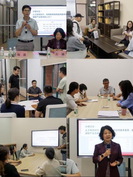 专题报告结束后,活动进入了分组互动交流环节。与会教师分为四个小组,围绕“在人工智能时代,高等教育如何应对技术变革、培养适配产业需求的人才”等话题展开热烈讨论。各组代表分享了学习心得,认为左老师的经验为高校教师提供了宝贵的借鉴:要做中学、要创新、要下企业、要跨学科协同、要形成团队合力。左老师也在回应中指出,教师应主动走进产业、融入企业,带着学生一起成长,才能真正保持教育教学的持久生命力,实现“为党育人、为国育才”的使命。
