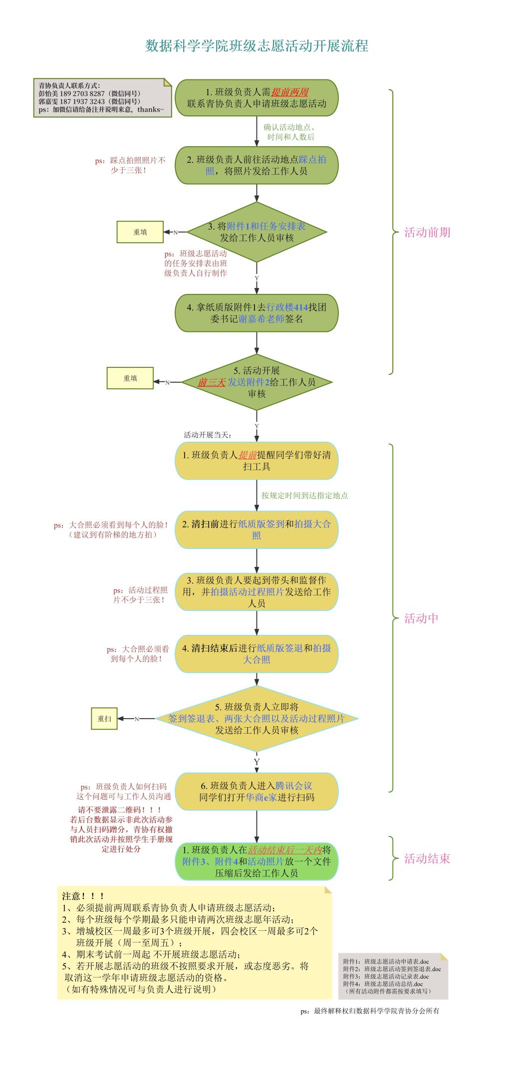 热点新闻 当前位置: 首页 >> 学院概况 >> 正文 数据科学学院班级志愿活动开展流程 2023-06-08 文档附件1-班级志愿活动申请表 文档附件2-班级志愿活动签到表 文档附件3-班级志愿活动记录表 文档附件4-班级志愿活动总结 下一条:数据科学学院讲座备案流程和借用教室流程 【关闭】