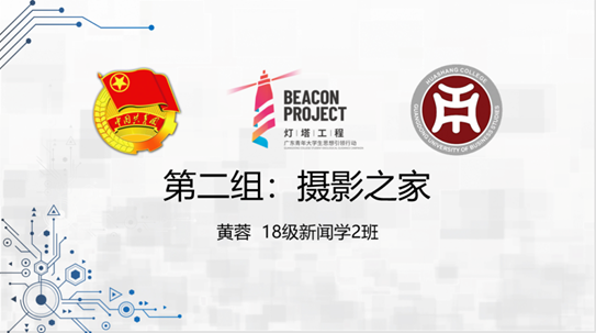 第二组:摄影之家,来自18级新闻学2班的黄蓉。黄蓉同学首先从开发技术支持方面以及安全技术方面下手。她表示一个好的app可以提升用户的使用体验,接着她提出了运营可行性的分析并分别介绍了前期、中期、中后期和后期的不同方案,以便让众多摄影爱好者可以获得更好的线上线下服务。
