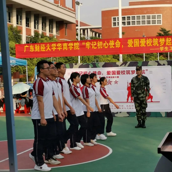 经过将近一个月的训练,“牢记初心使命,爱国爱校筑梦起航”军事技能大赛于2019年11月26日下午3时在广东财经大学华商学院西区一阶灯光篮球场如期举行。