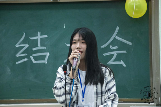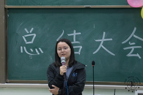 在短暂的游戏环节过后是数据科学学院团总支副书记陈新颖师姐进行发言。她表示在科技下乡活动中部门间有了更多的交流和配合,她也希望以后团学的部门与部门间有更多的交流和活动。她表示义教活动是十分有意义的,这对志愿者也是一种经历,希望同学们以后可以多参加院组织的活动。