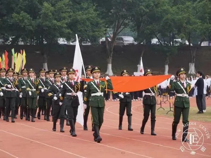 国旗护卫队带着昂扬的精气神,踏着矫健的步伐,以整齐划一的队形迎面朝着主席台走过来,充分地展示了华商学院的精神风貌,体现了华商学子的朝气与活力。