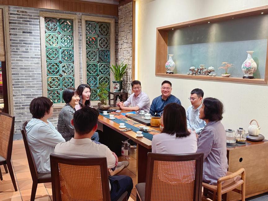 紧接着,校领导一行来到另一家校友企业珠海小远建筑装饰有限公司、珠海九级浪品牌策划有限公司。在这里,校友任书远以饱满的热情接待了来访团队。他详细介绍了创业历程和公司的主营业务,特别强调了今日取得的成绩,离不开母校的栽培和校友们的支持。