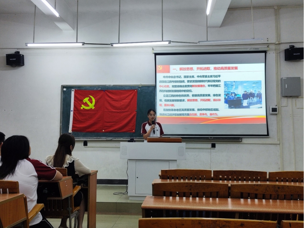 观看视频之后,我们学习到了习近平总书记在江西考察的重要指示和启示,主要内容包括:推动江西高质量发展、保护好长江、加快农业农村现代化、构建现代化产业体系等四个方面。推动农村现代化,要从人与自然和谐共生的生命共同体出发,着眼中华民族永续发展,把长江保护好。作为学生党员,深受习近平总书记在江西考察时的重要讲话精神鼓舞。我们要学习习近平总书记的亲民作风、务实态度和创新思维,坚定理想信念,勇于担当作为。