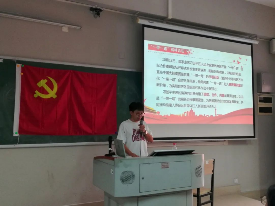 为深入学习贯彻习近平外交思想,引导党支部成员深入学习丝路精神,数据科学学院学生第二党支部于10月27日12:20在启智楼309开展“共赴‘一带一路’发展新征程”党日主题活动。出席本次会议的有数据科学学院学生第二党支部全体在校学生党员,会议由潘浩亮同志主持。