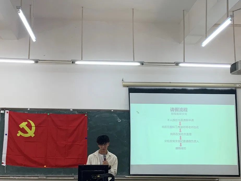 李坚豪同志在动员大会上主要强调了三个方面的内容:党课培训与注意事项、党课违纪处理方法以及党课请假流程及请假条模板。