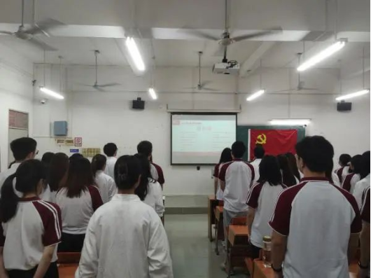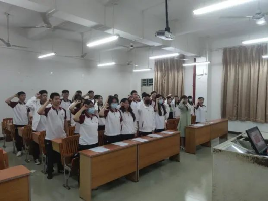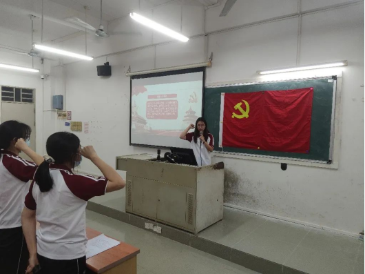 戚芷婷同志带领所有党员同志“重温入党誓词”