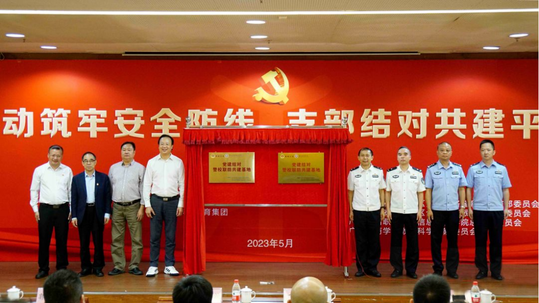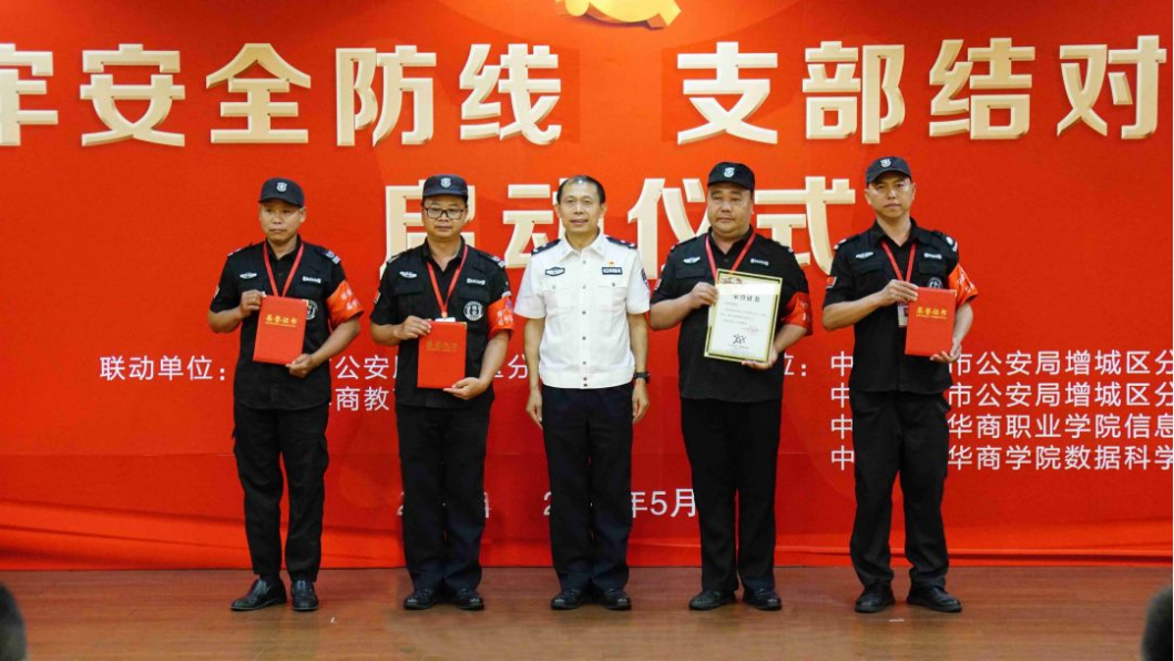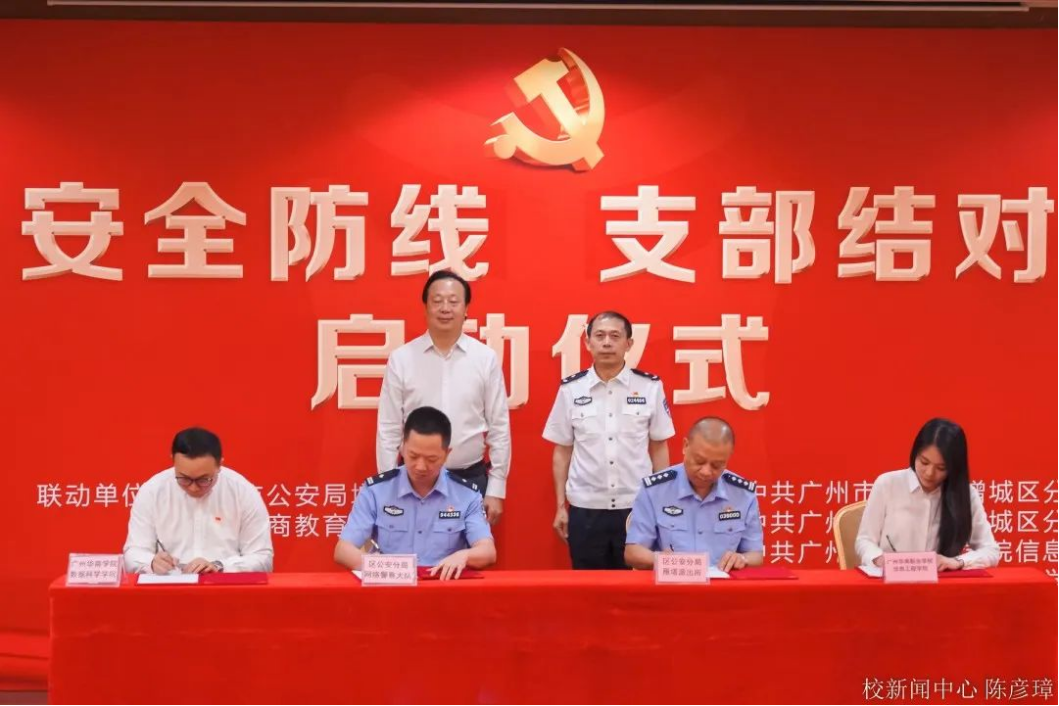 为深入贯彻党的二十大精神关于“统筹发展和安全,建设更高水平的平安中国”的要求,推动学习贯彻习近平新时代中国特色社会主义思想主题教育走深走实,5月19日上午,广东华商教育集团与广州市公安局增城区分局在华商学院中央图书馆报告厅隆重举行“警校联动筑牢安全防线,支部结对共建平安校园”启动仪式,警校合作单位共同签署共建协议书。