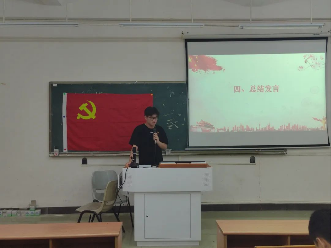 陈炽堃同志对本次党日做了总结发言,指出在实现中华民族伟大复兴的新征程上,应对重大挑战、抵御重大风险、克服重大阻力、解决重大矛盾,需要我们青年们拥有迎难而上、挺身而出的担当精神。我们作为新时代青年,要坚定马克思主义信仰,同时强化对马克思主义中国化理论化最新成果的认同感,要在思想上行动上组织上与党中央保持高度一致,其次在新时代的建设道路上,我们青年要敢担当青年使命,要肯吃苦,敢吃苦,要继承党的不怕艰辛,敢于斗争的精神,最后是要肯奋斗,习近平总书记指出:“社会主义是拼出来、干出来、拿命换来的,不仅过去如此,新时代也是如此。”我们要做好艰苦奋斗的思想准备,紧紧跟随党的步伐,在新时代、新征程上贡献属于我们的青春力量。