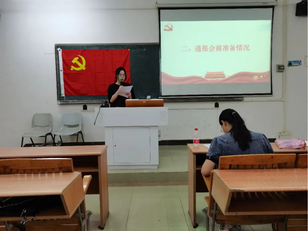 数据科学学院学生第一党支部副书记施宛菁从会前落实安排部署、广泛征求意见、扎实开展学习探讨、深入开展谈心谈话四个方面通报了会前准备工作情况。
