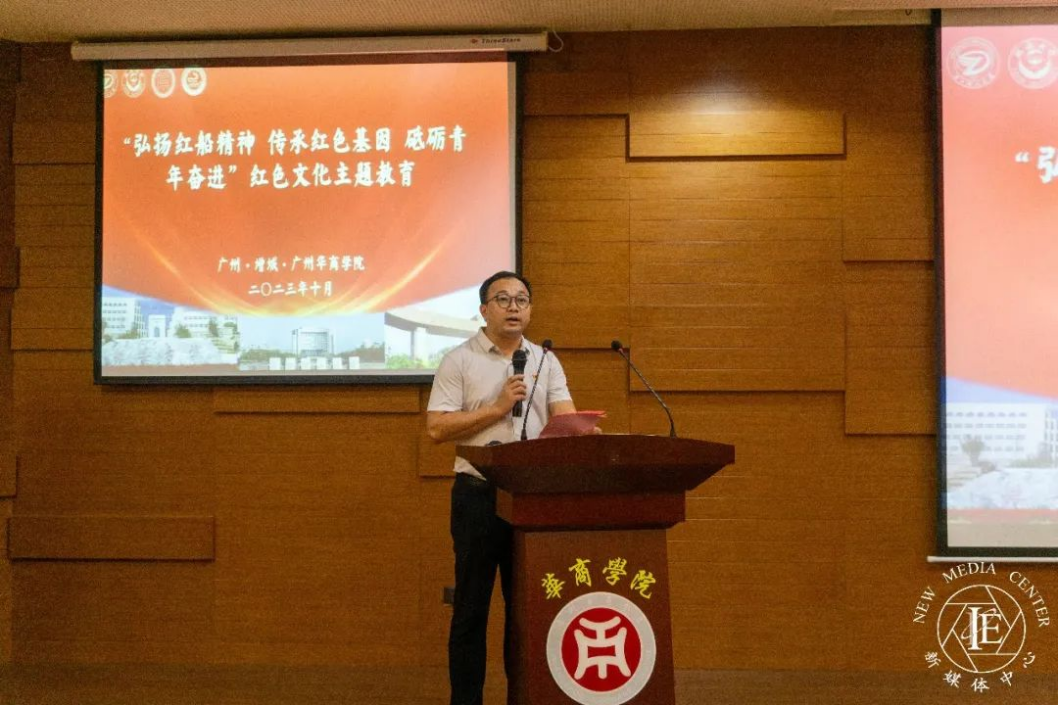 10月20日下午,“弘扬红船精神 传承红色基因 砥砺青年奋进”红色文化主题宣讲活动在广州华商学院图书馆报告厅举行。此次宣讲活动将助推我校红色文化传承,汇聚奋进新时代的蓬勃力量。会议由广州华商学院党委委员、数据科学学院党委副书记蒋大锐主持。