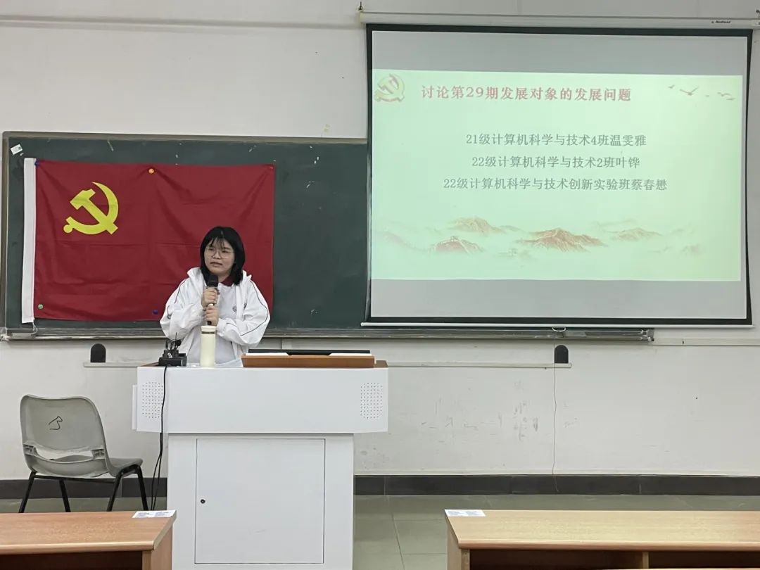 为进一步加强基层党组织建设,发展壮大学生党员队伍,切实提高党员发展质量,保持党员队伍先进性和纯洁性,按照党员发展细则和发展程序要求,数据科学学院学生第一党支部于2023年12月13日17:45,在励志楼D104召开第29期发展对象通表大会。出席本次会议的有数据科学学院学生第一党支部书记裴祖君老师、数据科学学院学生第一党支部全体在校学生党员以及学生第一党支部第29期发展对象。本次大会由施宛菁同志主持。