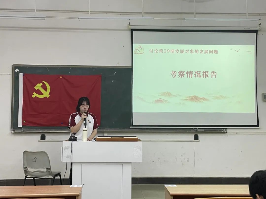 接着,由黄珮恩同志报告本期发展对象的综合考察、政治审查及公示等情况。