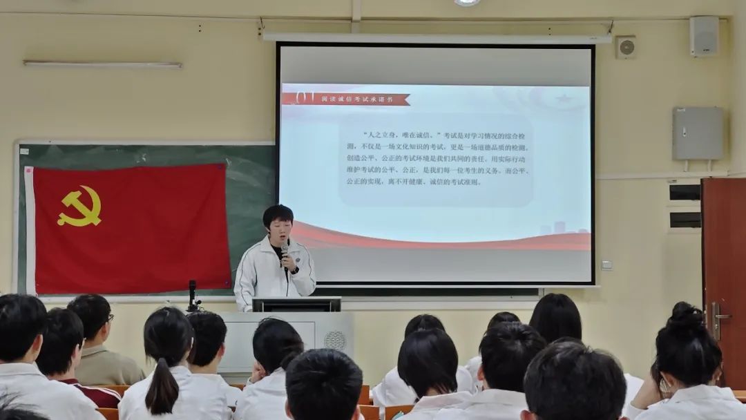 由学生党员胡骏同志领誓,全体人员郑重地进行考试宣誓,承诺严格遵守考试纪律。