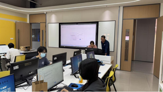指导老师与学生周末在实验室进行大赛训练