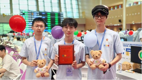 在强手如云的赛场中,三位同学沉着应战、合理分工,经过连续五小时的高强度思维与编程挑战,最终成功解出三道赛题,夺得铜奖,充分展现了个人的扎实功底与团队的默契配合,也体现了我院在算法教学、实践训练与学科竞赛培养方面的扎实成效。