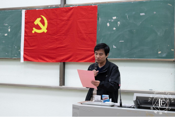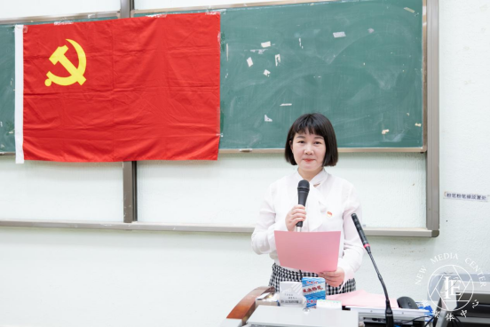 人工智能学院党委书记杨波同志代表中国共产党广州华商学院委员会宣读《关于同意广州华商学院人工智能学院教工第一党支部召开党员大会进行党支部委员会选举的批复》。
