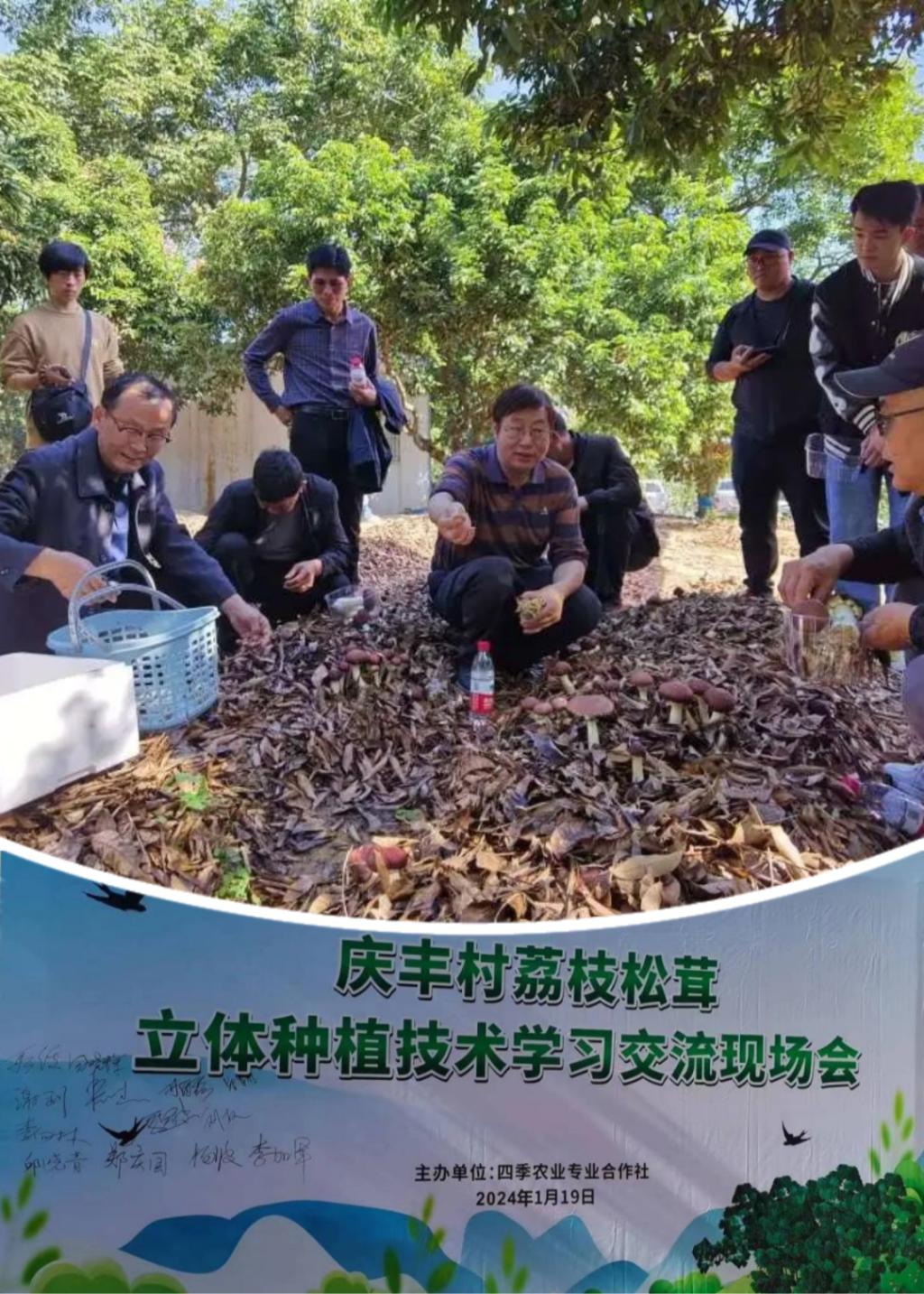 交流会上,农业专家详细介绍了荔枝松茸立体种植技术的创新之处,该技术通过矮化换头嫁接技术将老化低品质的荔枝树升级为高品质的仙进奉荔枝树,同时在荔枝树干上培育名贵中药材铁皮石斛,荔枝树下则种植高品质食用菌“中科1号红松茸”。这一综合种植模式充分利用了土地资源,提高了果园的经济产出率,为果农带来了可观的收益。