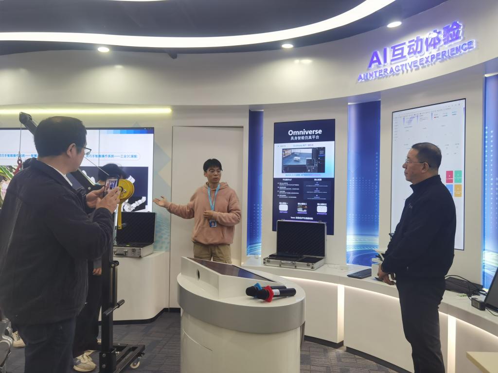 在业务经理张曼的引导下,吕峻闽副校长一行先后参观了公司旗下课程教学平台、人工智能训练平台及产教融合平台。实地了解了 Turing AI 大模型赋能下的具身智能仿真系统、myArm M&C 系列机器人技能训练模块等核心教学与实训资源,近距离观摩了 AI 互动体验、机器人实操训练等场景,对企业在人工智能教育软硬件一体化建设、产教融合生态构建方面的创新实践给予高度评价。特别是企业聚焦青年成长需求,将前沿技术与教学实践深度结合的理念,与学校培养应用型人才的目标高度契合。