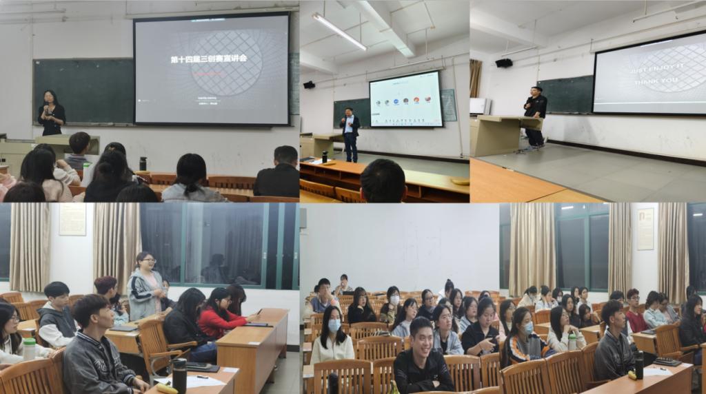 2023年12月5日晚上7点-9点开展了“第十四届三创赛”宣讲。姚仙丽、李加军、李周辉、朱晓琳老师和意向报名学生参加宣讲。