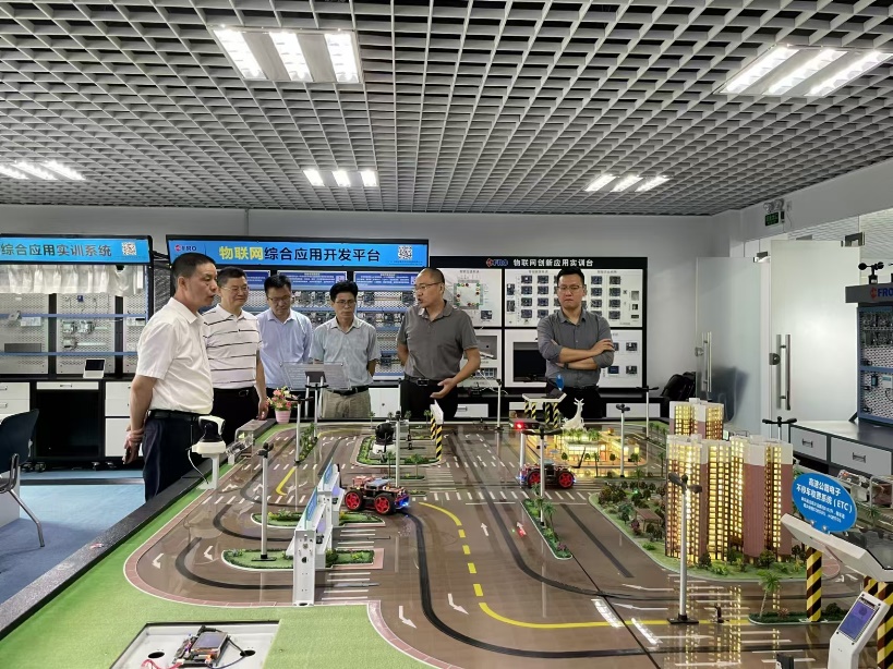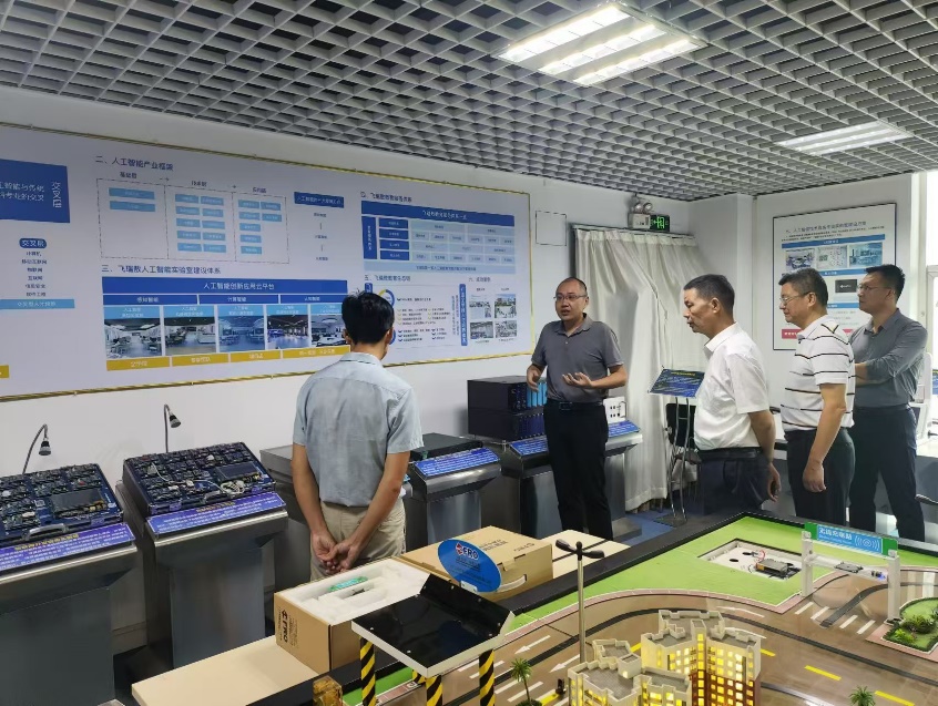 企业经理甄鹏首先引领学院代表团参观了飞瑞敖公司的多个展厅,详细介绍了公司的企业发展历程、人工智能人才培养体系、智能交通沙盘等。董事长梅仲豪亲自介绍了中小学师资培训展厅,展示了公司在教育领域的成果。
