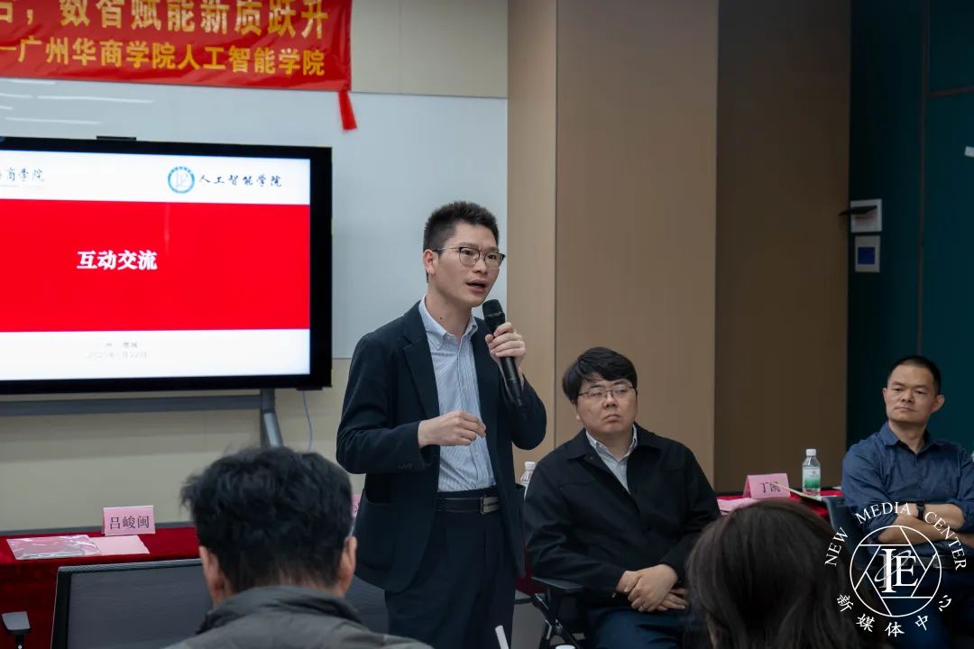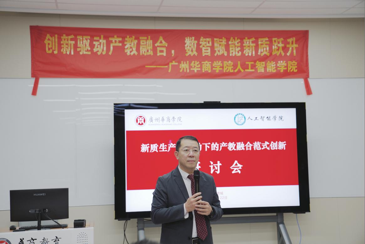 2025年3月22日下午,广州华商学院人工智能学院于弘美楼310室成功举办了主题为“新质生产力驱动下的产教融合范式创新”的研讨会。此次研讨会汇集了学术界与产业界的多位专家和领导,共同探讨在人工智能时代下,如何通过产教融合的新模式与新路径,促进教育与产业的深度结合,培养适应未来科技发展的高素质人才。出席研讨会的嘉宾与领导包括华为智能化研发技术专家付求爱、青软创新科技集团股份有限公司副总裁韩涛、东莞理工学院工业软件学院副院长丁凯、广州华商学院党委副书记、纪委书记兼副校长吕峻闽、人工智能学院副院长叶仕通、党委副书记兼副院长陈洋广、院长助理洪绍勇和杨本胜,以及人工智能学院全体教师。研讨会由广州华商学院人工智能学院党委书记、副院长杨波主持。