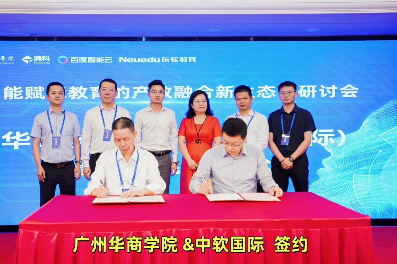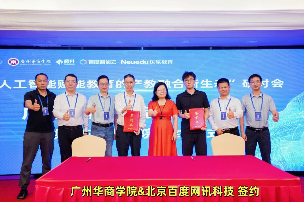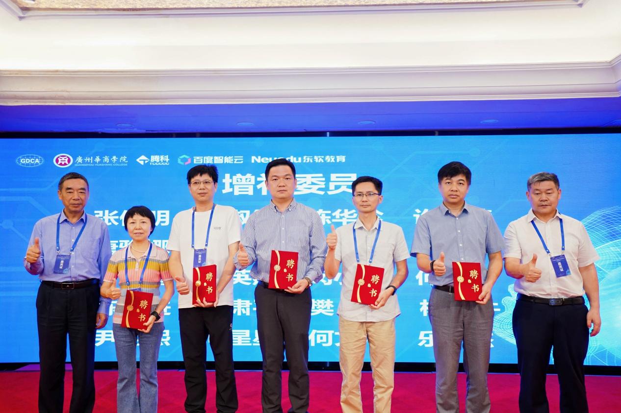 开幕式上还举行了广东省计算机学会民办教育工作委员会新增委员证书颁发仪式,形成覆盖“教育产业科研”的全链条智库网络同时举行了华商学院与百度、中软国际共建“人工智能与大数据省级现代产业学院”的签约仪式,华商学院与科技巨头达成两项战略合作:携手百度共建省级现代产业学院,百度将投入AI开发平台及企业实战项目等资源;同时联合华为(中软国际)共同开发"鸿蒙+AI"课程体系,聚焦智能硬件开发与端侧大模型部署领域,打造特色专业群。这两项签约标志着产教融合从资源协作迈向深度生态共建的新阶段。