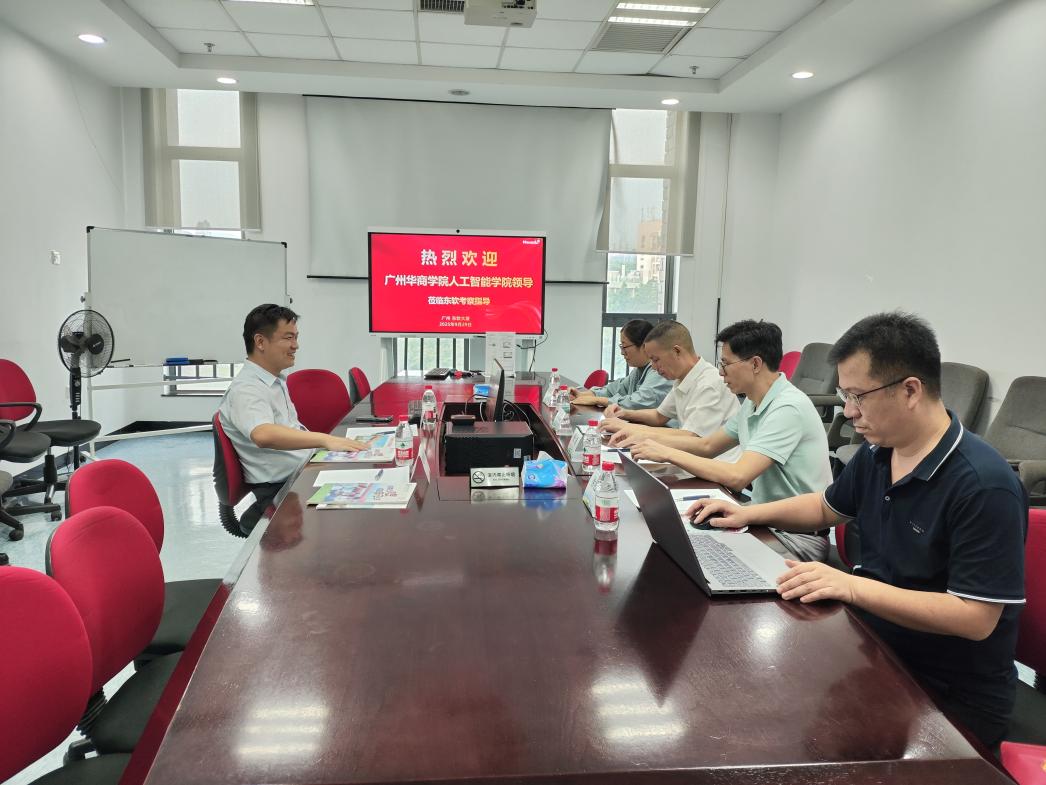 为积极响应国家深化产教融合、推进校企协同育人的号召,进一步提升人才培养质量,推动人工智能领域专业建设与产业发展的深度融合,2025年9月29日下午广州华商学院人工智能学院院长戴经国、学院党委书记兼副院长杨波、软件工程系主任田小玲、产教融合专员徐胜超一行走访了东软集团(广州)有限公司,双方就产教融合相关事宜展开深入交流,并达成多项重要合作成果。东软教育科技集团华南区总经理乐杰、东软教育科技集团华南区校企合作经理陆肖丽热情接待了学院到访团队。
