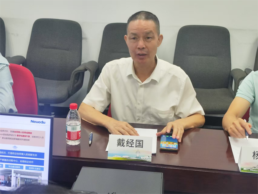 参观结束后,双方围绕共建产业学院、共建产业级案例资源、共建数字媒体技术专业等产教融合核心议题展开座谈。座谈会上,戴经国院长介绍了学院在人工智能、软件工程等专业的办学特色、人才培养模式以及近年来取得的教学成果,并表示希望通过与东软集团的合作,引入企业优质资源,构建产学研用协同育人机制,培养出更多适应产业发展需求的高素质应用型人才。乐杰总经理对学院的办学理念和人才培养成果给予高度认可,同时分享了东软集团在行业内的实践经验和人才需求状况,他指出,校企合作是实现资源共享、优势互补的重要途径,东软集团愿意发挥自身在技术、项目和行业资源等方面的优势,与学院共同探索创新人才培养模式,为行业发展注入新的活力。