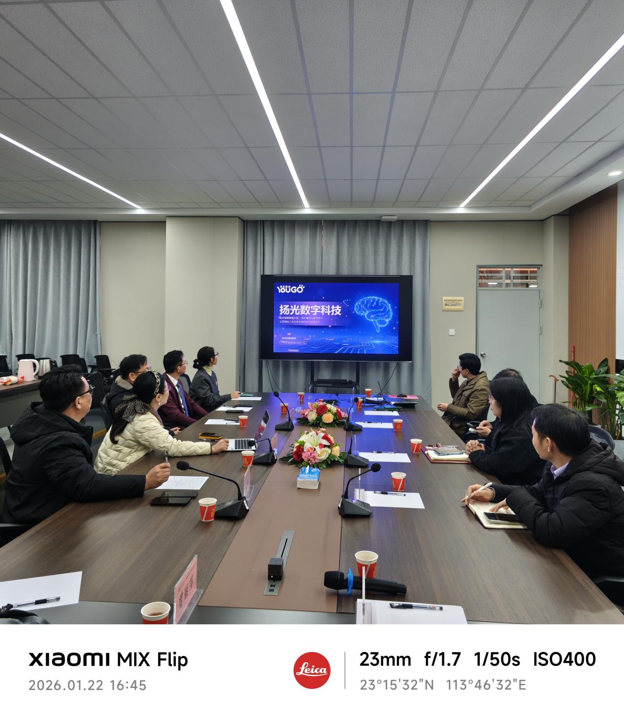 交流会尾声,双方均表示此次沟通成果丰硕,理念高度契合。广州华商学院人工智能学院党委书记兼副院长杨波总结指出,扬光数科“懂技术、懂品牌、懂业务”的独特优势与学院的办学方向高度匹配,合作空间广阔。深圳扬光数字科技有限公司董事长宋俊贤诚挚邀请校方领导前往公司东莞总部进一步考察体验,期待尽快推动具体合作项目落地。