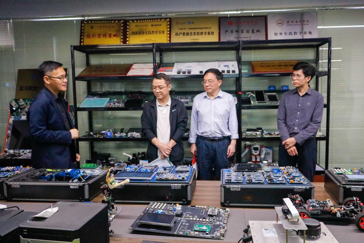 为深入贯彻国家关于深化产教融合、创新人才培养模式的战略部署,积极探索校企协同育人的新路径,3月31日广州华商学院教务处副处长朱越超、教评中心副主任倪春林、人工智能学院党委书记兼副院长杨波、实习指导教师朱浩、产教秘书王坤赴广州粤嵌科技有限公司,就校外实践教学基地的建设运行情况进行深入考察,广州粤嵌通信科技有限公司(以下简称粤嵌)对学院一行的到来表示热烈欢迎,总经理邓人铭、校企合作经理钟志城热情接待并全程陪同交流。此次考察旨在总结合作经验,检验建设成效,进一步推动学校与行业企业的深度对接,提升应用型人才培养质量。