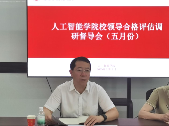 2025年5月15日上午,人工智能学院在创新楼301会议室召开合格评估5月份校领导督办会议。学校党委副书记、纪委书记、副校长吕峻闽莅临人工智能学院,就学院本科教学合格评估工作进行专项督办。会议由人工智能学院院长戴经国主持,学院党委书记、副院长杨波,副院长叶仕通,院长助理洪绍勇、杨本胜,各系正副主任,行政教辅人员参加会议。